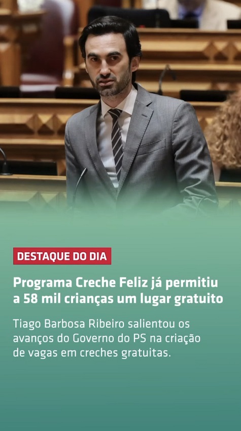 Lembrando que as creches passaram a ser gratuitas para todas as crianças nascidas após 1 de setembro de 2021 que frequentavam inicialmente a rede social de creches e as creches familiares com acordos de cooperação, Tiago Barbosa Ribeiro assegurou que os lugares estão a ser alargados: «Em Maio deste ano, 58.600 crianças portuguesas beneficiaram de lugares nas creches ao abrigo do programa Creche Feliz e cerca de cinco mil destas estavam na rede privada», indicou o socialista, que referiu que «o programa vai ser alargado progressivamente a todas as crianças», tendo havido «um reforço em 10 mil lugares ao abrigo do PRR».